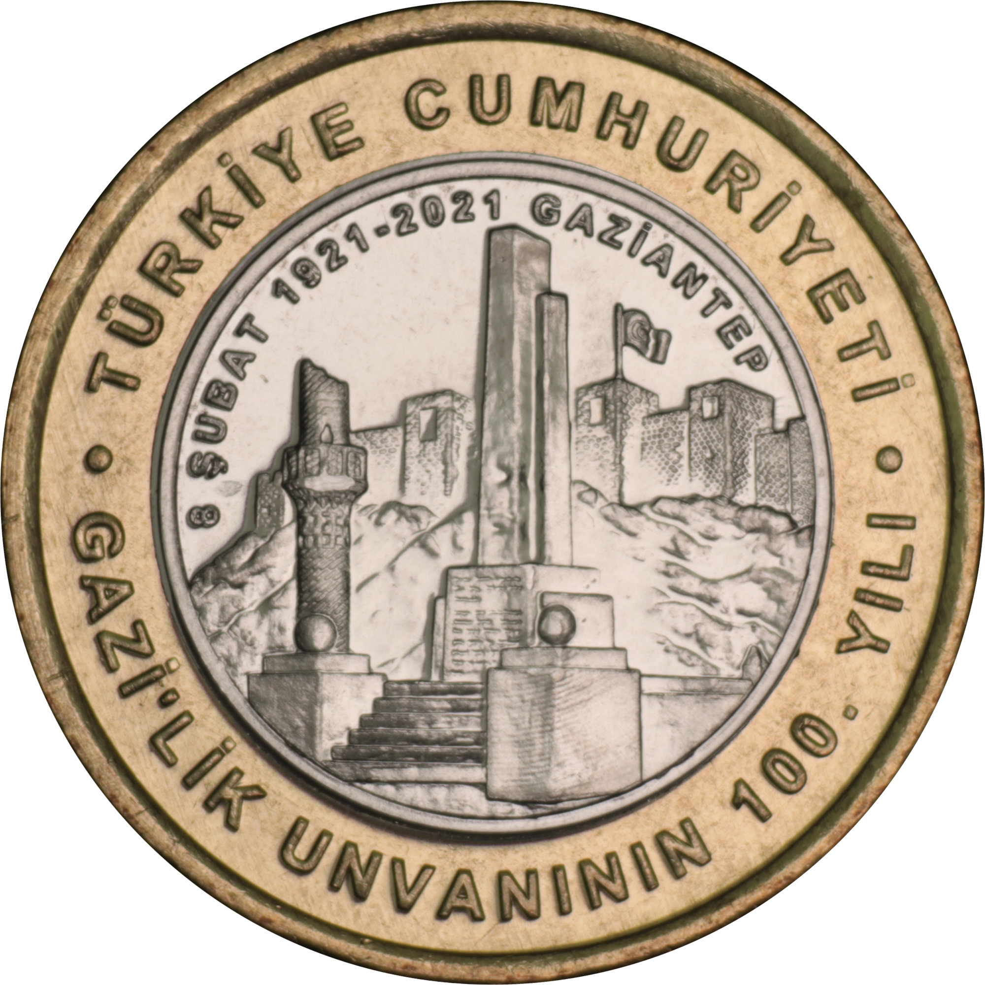 2021’de, Gaziantep’e gazilik unvanı verilişinin yüzüncü yıldönümü olması sebebiyle gümüş 20 Lira, bronz 2,5 Lira ve 1 Liralık hatıra tedavül parası basıldı. Gümüş ve Bronz hatıra paralar ayrıca ikisi birlikte bir takım olarak da satışa sunuldu.