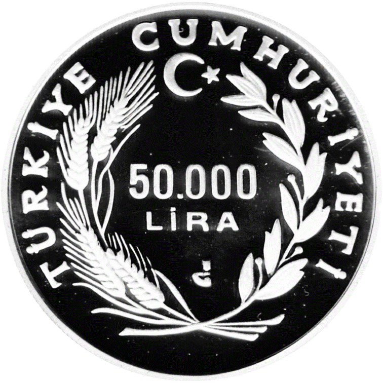 Born in 1956, the artist worked at the State Mint between 1969 and 1997. Engin Akarslan is also the creator of the obverse design with the inscription “TÜRKİYE CUMHURİYETİ” (Turkish Republic, Republic of Türkiye) and the wreath comprised of an ear of wheat and olive branch. This obverse pattern was used on many commemorative coins struck after 1979 (*1).